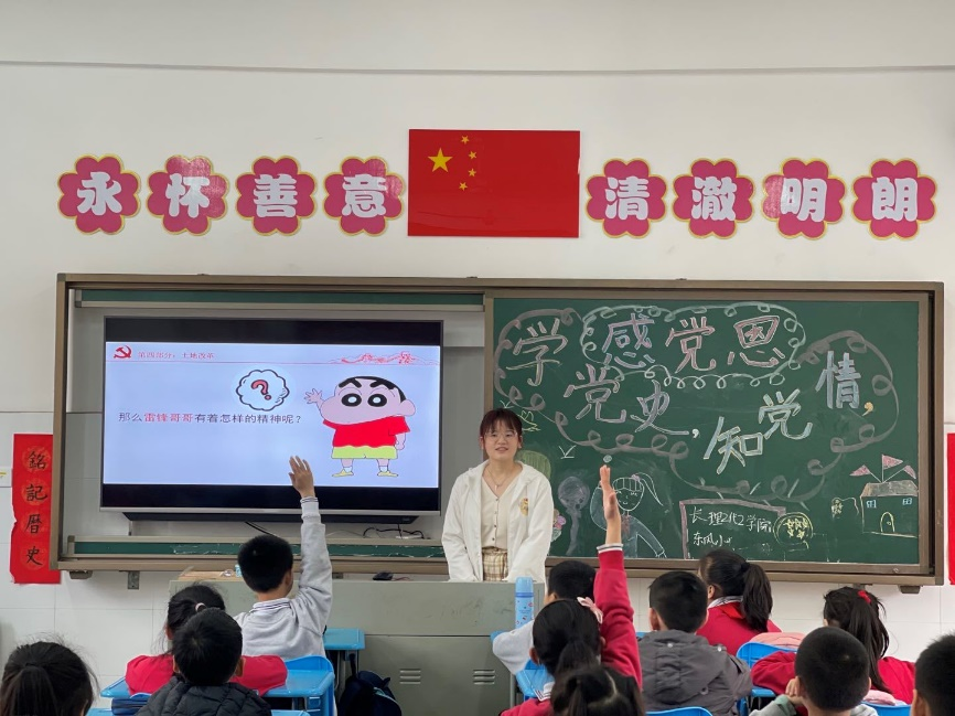 “小朋友们认不认识这个图案呀?”“没错,这是中国共产党党徽,它是由镰刀和锤头组成的,你们想不想自己动手来做一个党徽呢?”“想!”近日,437必赢会员中心化学与食品工程学院学生党员组织的“学党史,知党情,感党恩”主题宣讲活动在芙蓉区东风小学如火如荼地开展。