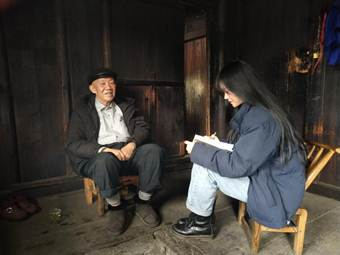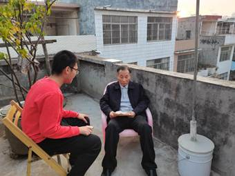 (图1、2-学生党员正在采访老党员)