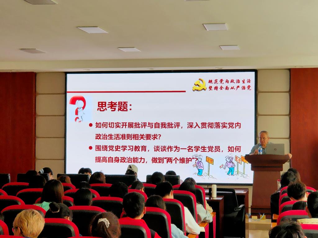 4月23日中午,化学学院和外国语学院于工三A320联合开展第十四期发展对象培训班第三次党课,主题为《关于新形势下党内政治生活的若干准则》,党课由化学学院专职组织员邓豫主讲,培训班全体学员参加。