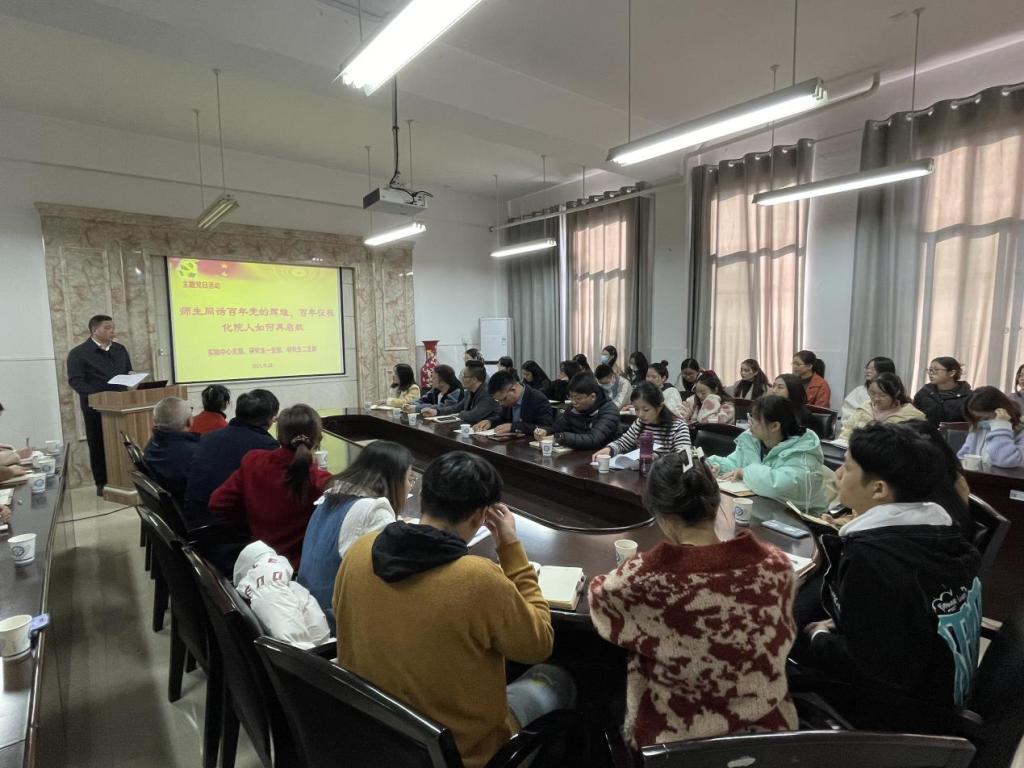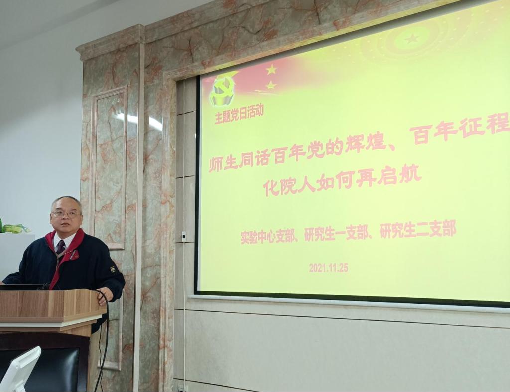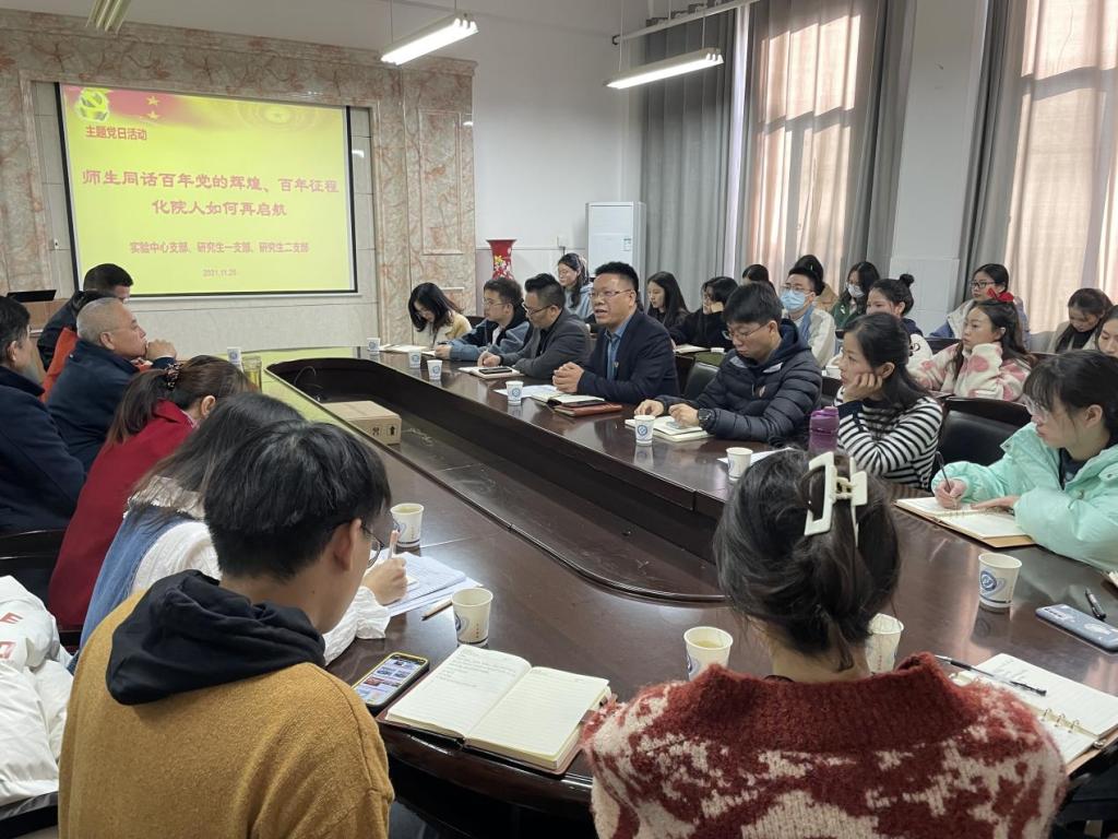 11月25日上午,437必赢会员中心化学化工学院实验中心党支部和研究生一、二支部在工三B318联合开展“师生同话百年辉煌,百年征程,化院人如何再启航”主题党日活动。