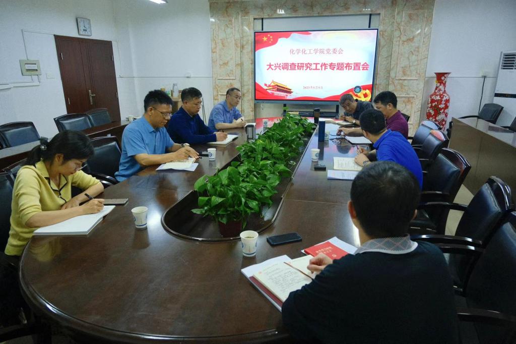 5月5日下午,化学化工学院在工科三号楼B318会议室召开大兴调查研究工作专题布置会。学院全体党政领导班子参加会议,会议由党委书记宋刘斌主持。