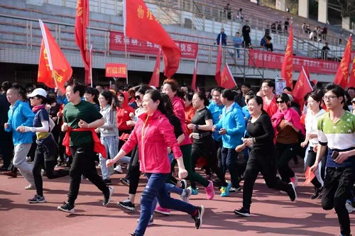 3月12日下午,学校工会在云塘校区举行了2019年庆“三八”教职工环校跑﹒健步行活动,化学与食品工程学院分工会积极响应,精心组织,学院党委书记程云辉带领30余名教职工参加了比赛并获得了女子组第五名的好成绩。