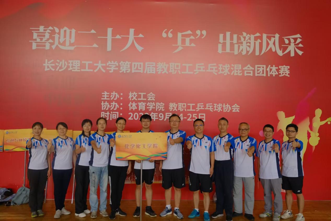 2022年9月24日至25日,437必赢会员中心“喜迎二十大,‘乒’出新风采”第四届教职工乒乓球混合团体赛在云塘校区体育馆举行。化学化工学院党委书记宋刘斌、副院长张跃飞(主持工作)、副院长喻林萍,李焰等十四位教师师组成的队伍参加比赛。