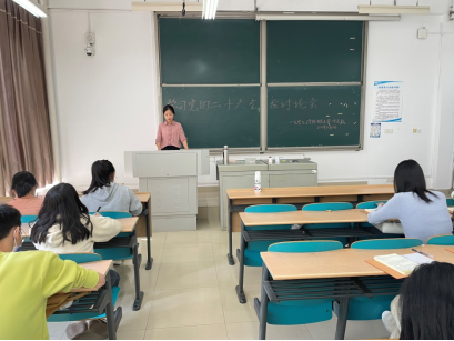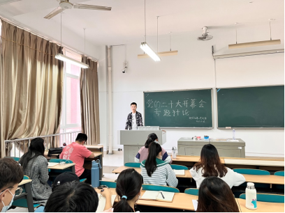 (研究生第一党支部书记孙佳乐组织支部党员开展讨论)