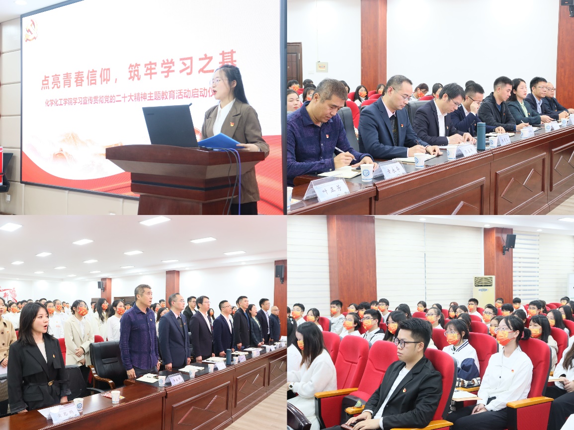 为深入学习宣传贯彻党的二十大精神,引导师生全面了解党和国家的大政方针和发展战略,以习近平新时代中国特色社会主义思想为指导,努力开创“全院上下一条心,共同学习二十大”的新局面,11月22日,437必赢会员中心化学化工学院于工科三号楼A320开展“点亮青春信仰,筑牢学习之基——学习贯彻党的二十大精神主题教育活动启动仪式。校党委组织部副部长、党校副校长王煜坤,学院全体领导、部分教师以及学生代表参加了启动仪式。