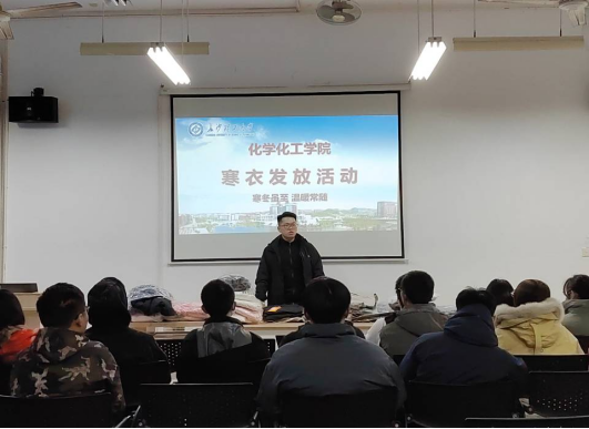 为进一步落实学生资助政策,做好学院家困生防寒保暖工作,12月1日下午,化学化工学院于工三B210举办了一年一度新生寒衣发放活动,在凛冬来临之际为同学们发放寒衣,送上学校与学院的关心关怀,传递爱与温暖。本次活动由学院资助辅导员王彪老师主持,勤工助学部成员及全体受助同学参与此次寒衣发放活动。