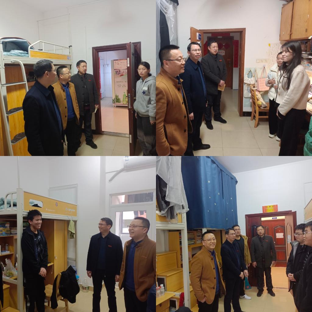 宋刘斌一行逐间走访学生宿舍,与同学们亲切交流,悉心询问同学们的身体状况及假期学习生活情况,叮嘱同学们提高安全防范意识,注意人身财产安全,同时返校后要积极复习备考,迎接到来的考试。强调同学们在校园生活和学习中遇到困难及时要向学院反馈,学院会积极帮助同学解决困难。
