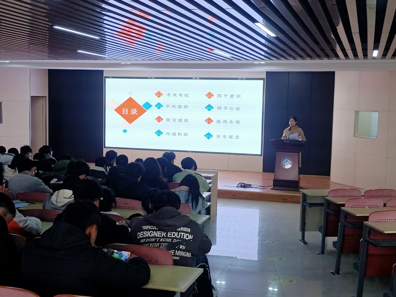 2月21日16点,化学化工学院在工三A307召开2021级本科生新学期第一次年级大会,会议围绕“复习备考、学风建设、寝室建设、沟通机制、加强意识、调节心态、提升本领及安全稳定”等八个方面开展。21级全体学生参加,会议由年级辅导员孙佳乐主持。