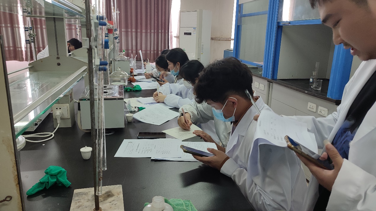 此次大赛分为初赛和决赛两个阶段。初赛为笔试,包括实验基本原理和基本实验操作规则,考察研究生对理论知识的掌握程度。决赛为操作技能竞赛,主要考察研究生对实验掌握的熟练程度,决赛也是本次实验技能大赛的关键环节。工作人员在比赛前进行了一系列的充分准备:配置药品、购买仪器、联系实验室等,并且邀请了李江胜、李志伟、彭三军、谭碧君等领导、老师及受过培训的学生代表作为评议委员,对同学们的基本化学实验技能、实验设计、实验操作、数据采集和分析等方面进行评议打分。