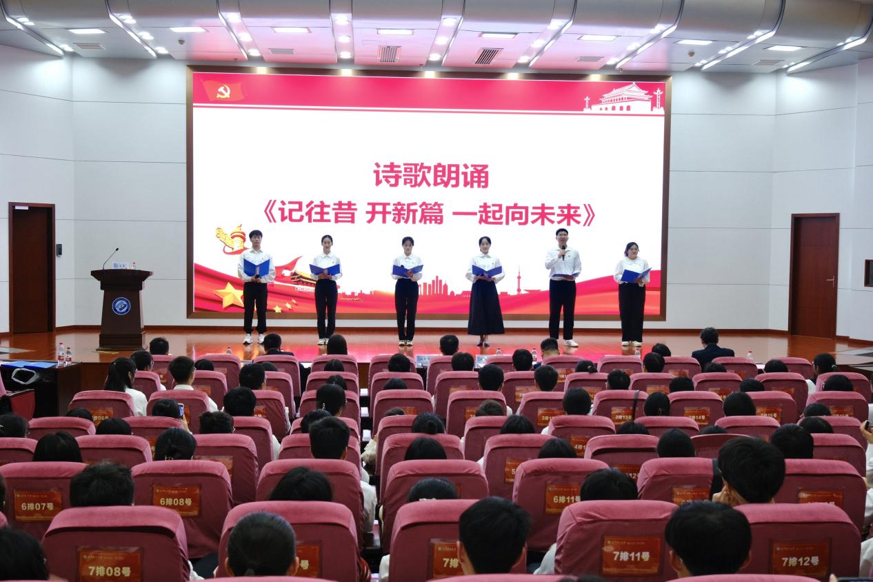 为了表达对“湿地使者”支部的祝福,各支部代表及学生会代表上台朗诵:《记往昔 开新篇 一起向未来》。朗诵激荡澎湃,表达了“湿地使者”支部为建设美丽中国的愿景,以及为实现中华民族伟大复兴的中国梦接续奋斗的决心。