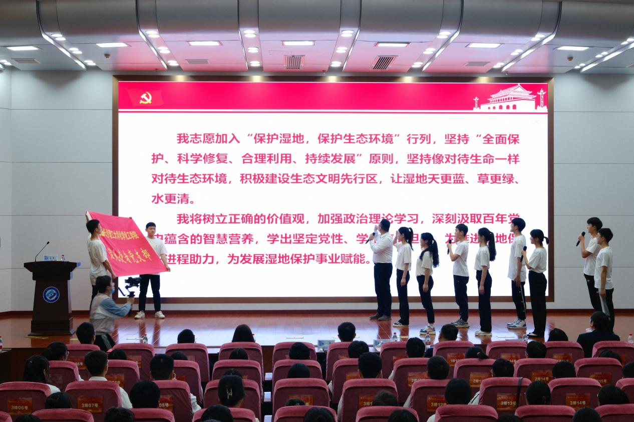 最后,“湿地使者”支部成员集体宣誓,他们将严格要求自己,牢记党员责任,为推进湿地保护进程助力,为发展湿地保护事业赋能。