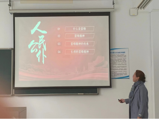 首先她介绍了雷锋同志的生平事迹。然后她解读了雷锋精神的具体含义,雷锋精神大体可以概括为“憎爱分明的阶级立场、言行一致的革命精神、公而忘私的共产主义风格、 奋不顾身的无产阶级斗志”。接着她阐述了可以从哪几个方面将雷锋精神落到实处。第一,要传承爱憎分明的阶级立场与言行一致的革命精神。雷锋精神是青年人的道德标杆,言行一致,是当代青年应该奉行的规范。作为研究生更应该把崇高的理想信念和道德品质追求融入日常的学习工作生活,在学术道路上,严守学术道德标准。第二,传承公而忘私的共产主义风格、奋不顾身的无产阶级斗志。雷锋人生观最光彩夺目的是正确地解决了“为谁活着,怎样做人”的问题。同学们应该树立正确的三观,并保持着昂扬的精神状态和勇往直前的干劲,热爱党、热爱祖国、热爱社会主义。