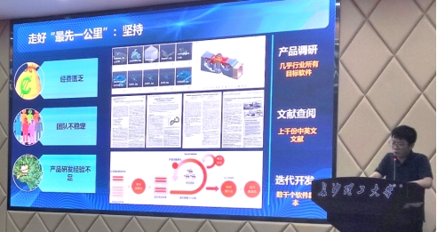 黄旺讲述了他的创业经历,从思想的萌芽讲到成果和突破,向大家展示了十年磨一剑,以创新创业绽放青春的故事。郭肖晋从三个方面讲述了如何做一名“有理想、敢担当”的数学人。在思想品德方面要坚定不移跟党走、甘于奉献;在学习科研方面要稳扎稳打、追踪前沿;在未来规划方面要满怀感恩、奔山赴海。