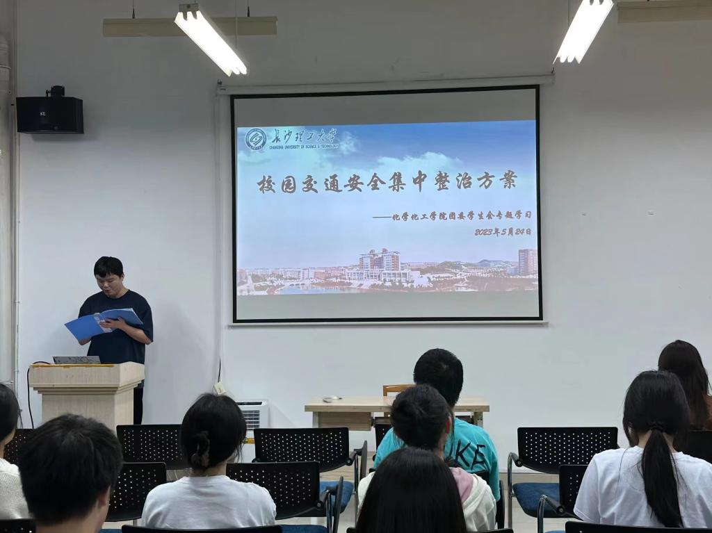 为进一步规范校园道路交通安全秩序,提升广大师生员工交通安全出行的规则意识、法治意识和文明意识,2023年5月24日,化学化工学院团委学生会全体学生干部在云塘校区工科三号楼B210开展了校园交通安全集中整治专题学习。