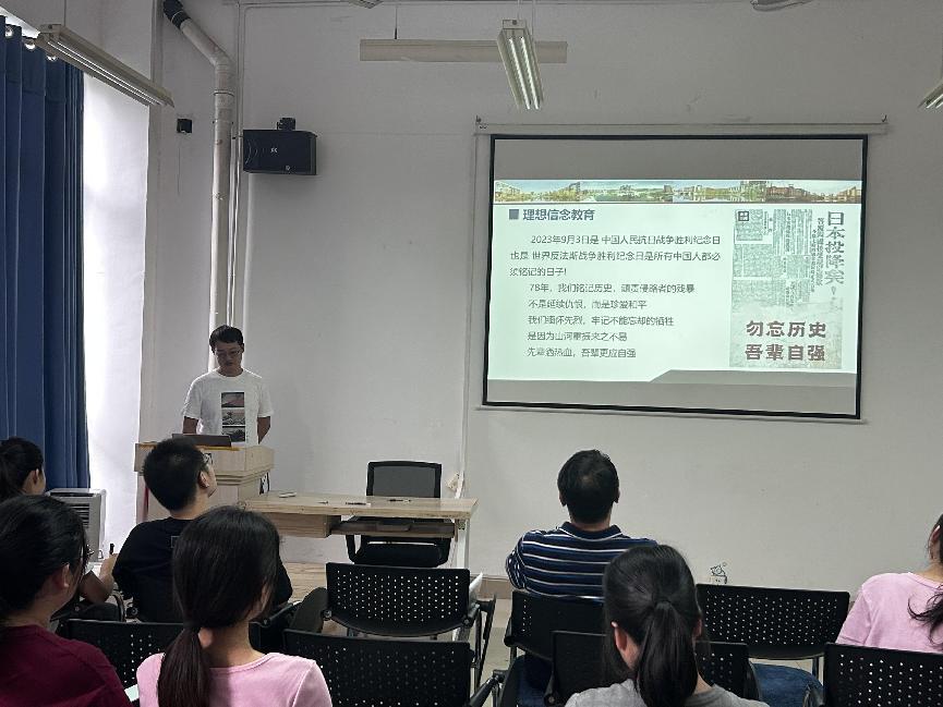 特别重视理想信念教育。9月3日是中国人民抗日战争胜利纪念日,铭记历史才能开创未来。应化2103班班主任李焰强调:“我们每一位同学都要坚定自己的理想信念,努力成为国家科技创新事业的中坚力量,以优异的成绩实现个人价值和祖国复兴的伟大目标。”