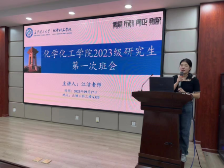 为进一步促进研究生新生班级融合和相互了解,9月17日,化学化工学院2023级研究生第一次班会在云塘工科三楼A320召开,本次班会由研会主席肖翩翩主持,辅导员江洁、2023级全体研究生、研会全体成员参与。