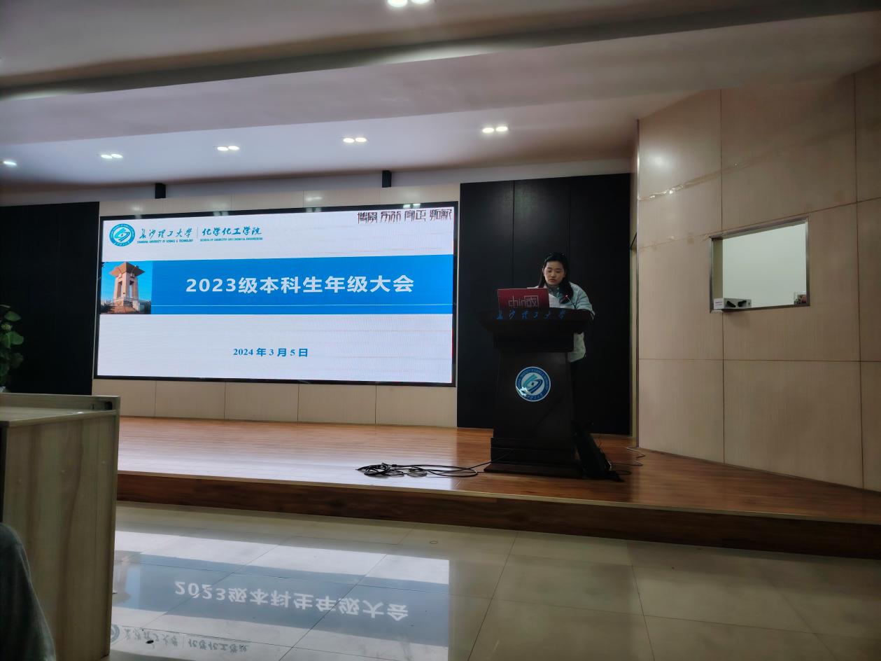 3月5日晚,化学化工学院2023级本科生年级大会在工科三号楼A307举行。会议由2023级本科生辅导员陈楠老师主讲,2023级全体本科生参会。辅导员陈楠老师主要从三个方面与同学们进行交流。