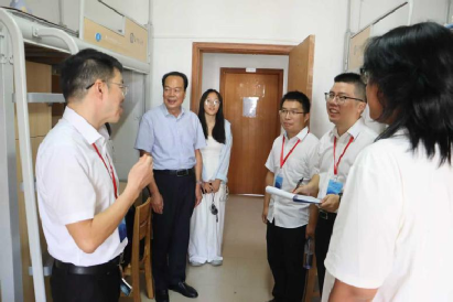 9月14日上午,437必赢会员中心云塘校区新生入学工作基本完成。为全面了解新生入学后的适应情况,帮助学子尽快融入大学生活,化学与医药工程学院党委书记宋刘斌带领学院领导班子成员深入新生宿舍,看望初入校园的学子,送去学院的关怀与温暖。