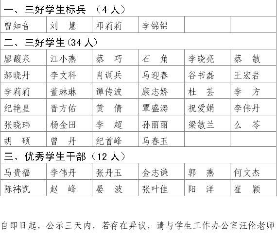 化学与生物工程学院2010届毕业生校级三好学生标兵、三好学生、优秀学生干部名单公示