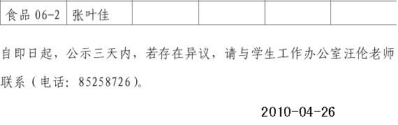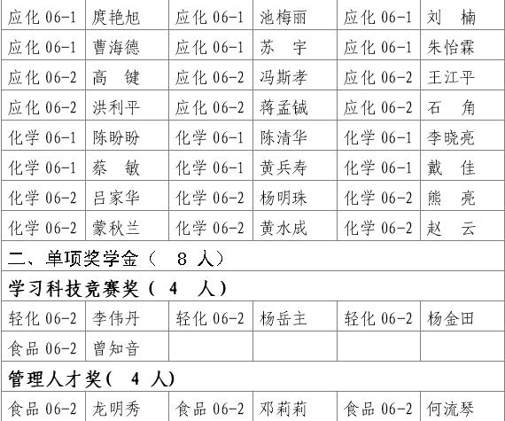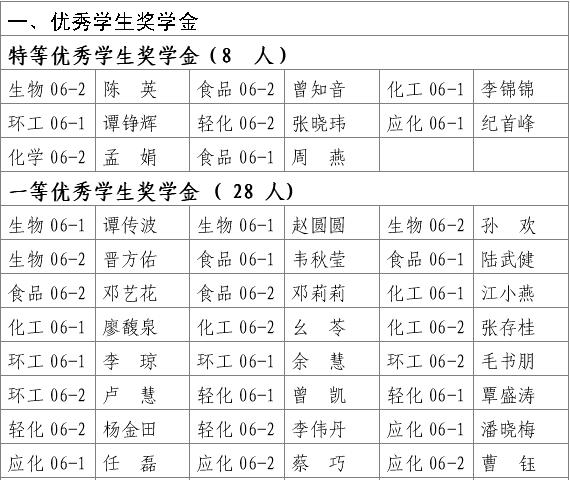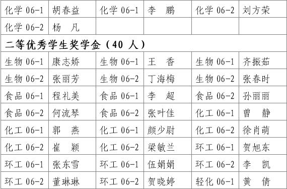 化学与生物工程学院2010届毕业生获奖学金名单公示