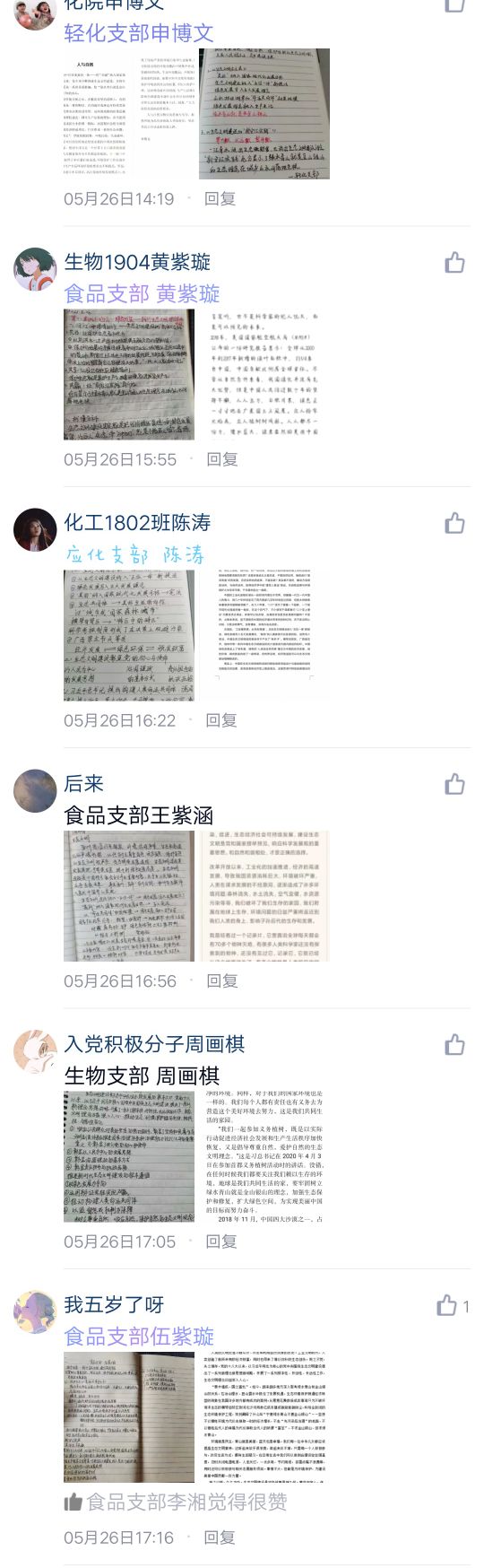 围绕践行生态文明,建设美丽中国,以及环境保护和经济发展之间的关系等视频资料进行学习。资料介绍了生态文明建设逐步被我国重视起来的过程,从生态文明建设纳入“五位一体”到绿色发展写入五大发展理念、从美丽纳入国家现代化发展目标到写入宪法,从山水林田湖草“命运共同体”初具规模,到绿色发展理念融入生产生活。绿水青山和金山银山从来都不是对立的,要正确处理经济发展和环境保护之间的关系。深入学习后大家进行了热烈的线上讨论交流。应化支部曹雅诗提到,“如今全社会对环境友好产业和产品的追求,也在更大程度上影响了科学技术的偏向性研究,在未来绿色、高效将是产业追求永恒的命题。生态文明建设新理念也促进了社会经济转型的过程。”应化支部张冬红谈到,“在生态文明建设上,中国也应展现大国担当,带头构建生态建设人类命运共同体,为世界治理、保护环境做好表率,为世界各国实现人与自然和谐共生、创造人类美好未来贡献中国智慧和中国方案。”环工支部苏雪纯提到,“当代青年是社会主义建设中的主力军,环境需要保护,需要治理,我们就代表着中国的明天,责任在我,必将全力以赴,作为新时代青年,必需积极投身于生态文明建设,努力践行共产党员的初心与使命。”