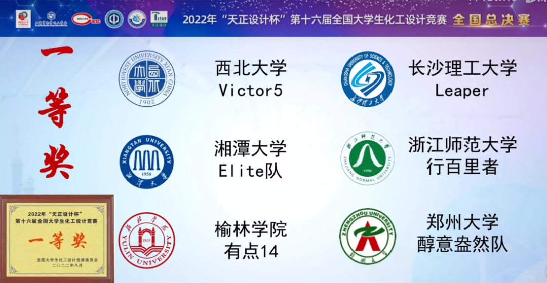 8月20至22日,2022年“天正设计杯”第十六届全国大学生化工设计竞赛全国总决赛在华东理工大学顺利举行,必赢官网化学化工学院“Leaper”团队成员:胡东妮、庹仪敏、田博、朱昊、颜文利,指导老师:张跃飞、黄灵芝、黄朋勉、李丽峰一路披荆斩棘,相继斩获华南赛区特等奖、全国一等奖。