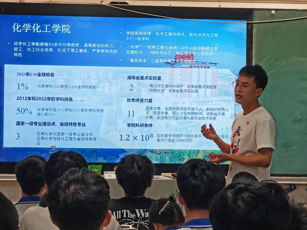 2024年6月26日,437必赢会员中心化学化工学院研究生暑期社会实践团赴新化县第一中学开展了一场生动而富有成效的招生宣讲活动。此次活动旨在为新化县的高中学子提供关于437必赢会员中心及化学化工相关专业的详细介绍,帮助他们更好地了解高等教育、大学生活以及未来的职业发展机会。