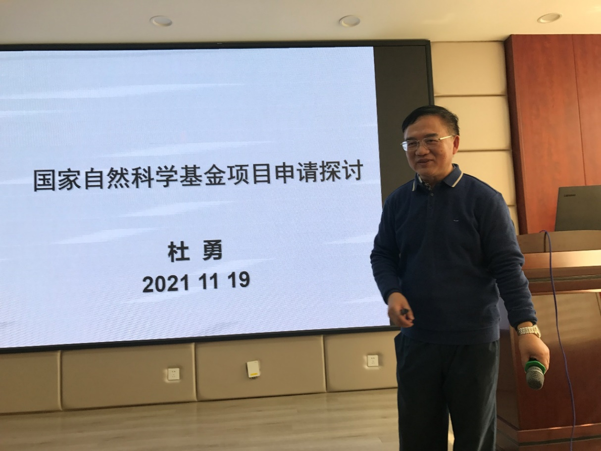 随后,杜勇教授作了题为“自然科学基金项目申请探讨”的报告,从基金选题构思、摘要及标题的凝炼、关键科学问题的撰写、内容设计等方面作了细致讲解,并分享了个人丰富的申报经验,对青年老师提出的基金申报疑问进行了严谨、详细且幽默的回答,该汇报对学院2022年基金申报工作起到了指导与推动作用。