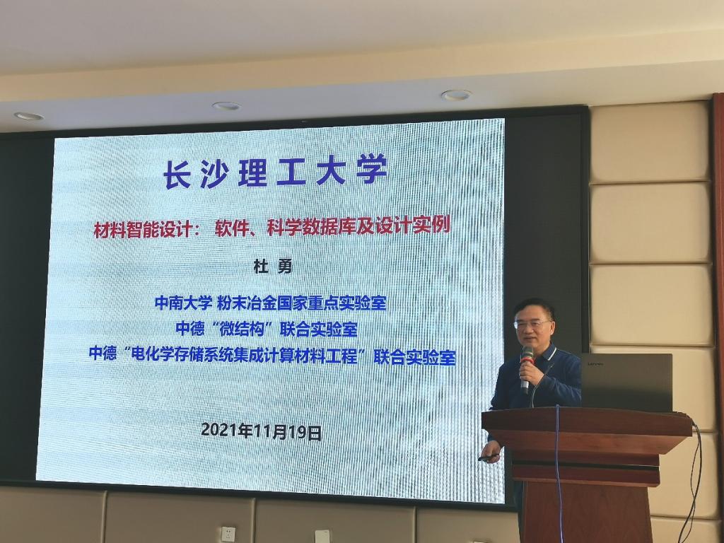2021年11月19日10:00,应437必赢会员中心化学化工程学院的邀请,国家杰青、长江学者、中南大学教授杜勇在437必赢会员中心云塘校区工三A320作了题为“材料智能设计:软件、科学数据库及设计实例”的学术报告,报告由化学化工学院电力与交通材料保护湖南省重点实验室主任曹忠教授主持,化学化工学院部分教师和研究生百余人参加了交流会。