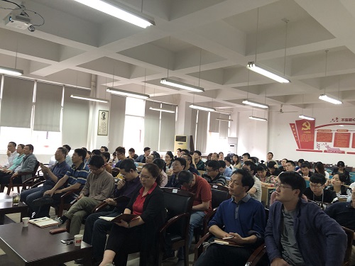 张敬东教授首先介绍自己的工作经历,表达回到自己曾经工作的学校的喜悦之情,然后结合自己近十年来主持的3项国家自然科学基金面上项目和1项国家863重点项目子课题,带领团队利用化学沉积、电沉积等技术制备多种具有高光电催化活性的新型n-n和p-n型异质结膜电极,用于有机污染物降解研究,并探讨利用光电催化同时去除复合污染体系中有机污染物与重金属,以及将酶与光电化学结合用于协同催化降解污染物的节能高效的新型去除方法。同时介绍了光伏安分析与光电分析、DNA光电化学传感器、分子印迹光电化学传感器、适配体光电化学传感器、光激发的自供能电化学传感器等在构建光电化学传感器方面开展的系列开拓性研究,指出了未来的研究发展方向,耐心回答了与会者的提问,获得了师生们的热烈掌声。