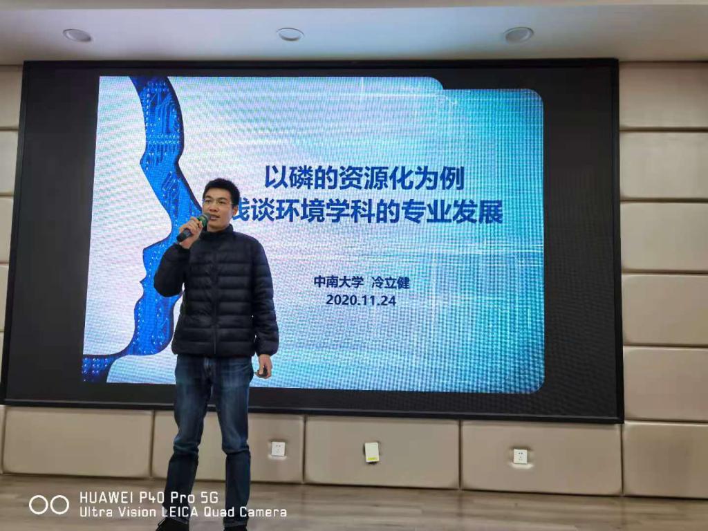 11月24日上午,应437必赢会员中心化学与食品工程学院环境工程教研室邀请,中南大学能源科学与工程学院特聘教授冷立键博士在云塘校区工三A320作了题为“以磷的资源化为例浅谈环境学科的专业发展”的专题学术报告,本次讲座由化学学院副院长曹忠教授主持,化学学院环境、化学、化工及相关专业老师、研究生和本科生共百余人参加。