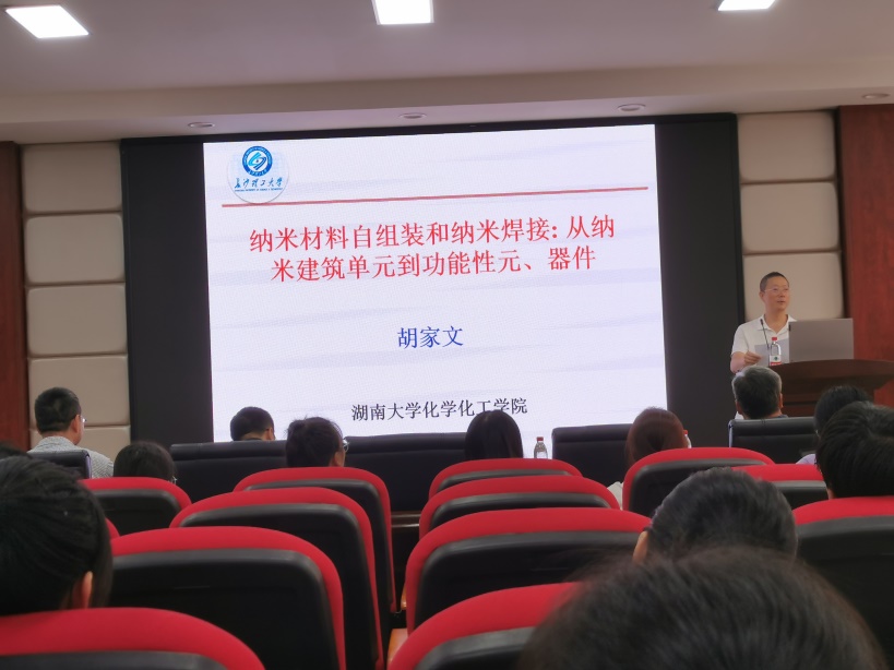2022年9月9日下午14:30,应437必赢会员中心化学化工学院、电力与交通材料保护湖南省重点实验室的邀请,湖南大学化学化工学院博士生导师胡家文教授来必赢官网开展学术交流,在云塘校区工三A320报告厅作了题为“纳米材料自组装和纳米焊接:从纳米建筑单元到功能性元、器件”的学术报告。学术报告会由电力与交通材料保护湖南省重点实验室主任曹忠教授主持,化学化工学院物理化学等相关学科师生百余人聆听了报告。