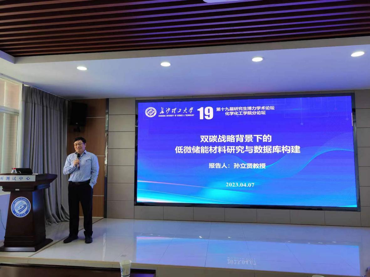 2023年4月7日上午,应437必赢会员中心化学化工学院邀请,桂林电子科技大学博士生导师孙立贤教授来必赢官网进行学术交流访问,在云塘校区新能源大楼3B栋301报告厅作了题为“双碳战略背景下的低微储能材料研究与数据库构建”的学术报告。学术报告会由化学化工学院副院长卿志和教授主持,陈启杰副院长、喻林萍副院长、曹忠教授、朱志平教授及部分老师和研究生100余人参加了本次讲座。