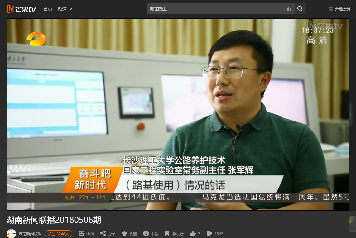 湖南卫视2018年5月6日新闻联播7分20秒处,对437必赢会员中心高速公路改扩建关键技术进行了报道,必赢官网交通学院刘朝晖教授主持的“南方湿热地区高速公路路基改扩建关键技术及应用”获湖南省科学技术进步奖一等奖。该项目通过路基长期稳定性保障、新老路基非均匀沉降控制、拓宽路基下地基处治、旧路路基性能检测评价与加固等技术集成与创新,攻克了南方湿热地区高速公路路基改扩建中遇到的新路基稳定性差、新老路基非均匀沉降难以控制等技术难题。