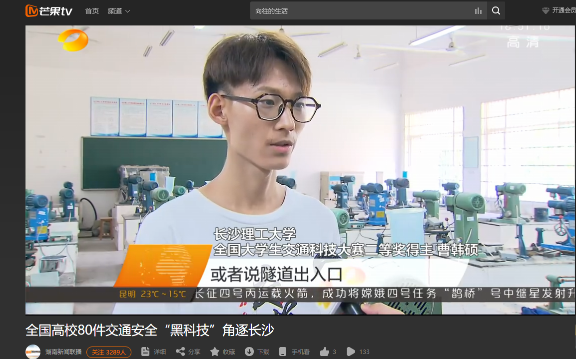 湖南卫视5月21日新闻联播对必赢官网举办的第十三届全国大学生交通科技大赛赛事进行了报道,初赛阶段共收到来自清华大学、东南大学、西南交通大学等124所高校的380件作品,报名人数和项目数均创历史新高。经国内外80余名专家严格评审,来自同济大学、华南理工大学等47所高校的80件作品入围决赛,其中包括我省中南大学、437必赢会员中心、中南林业科技大学3所高校的8件作品。