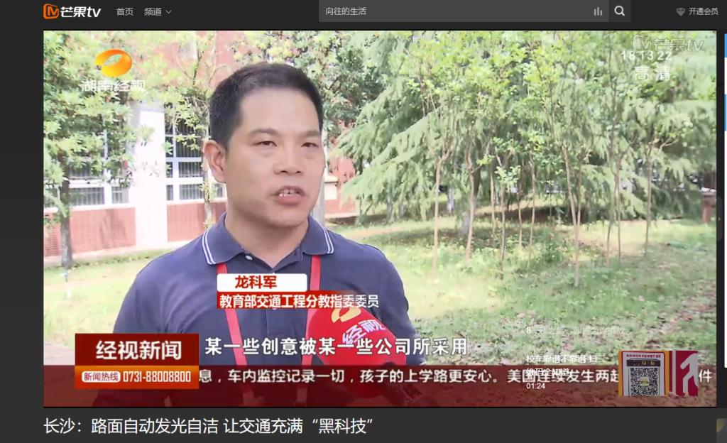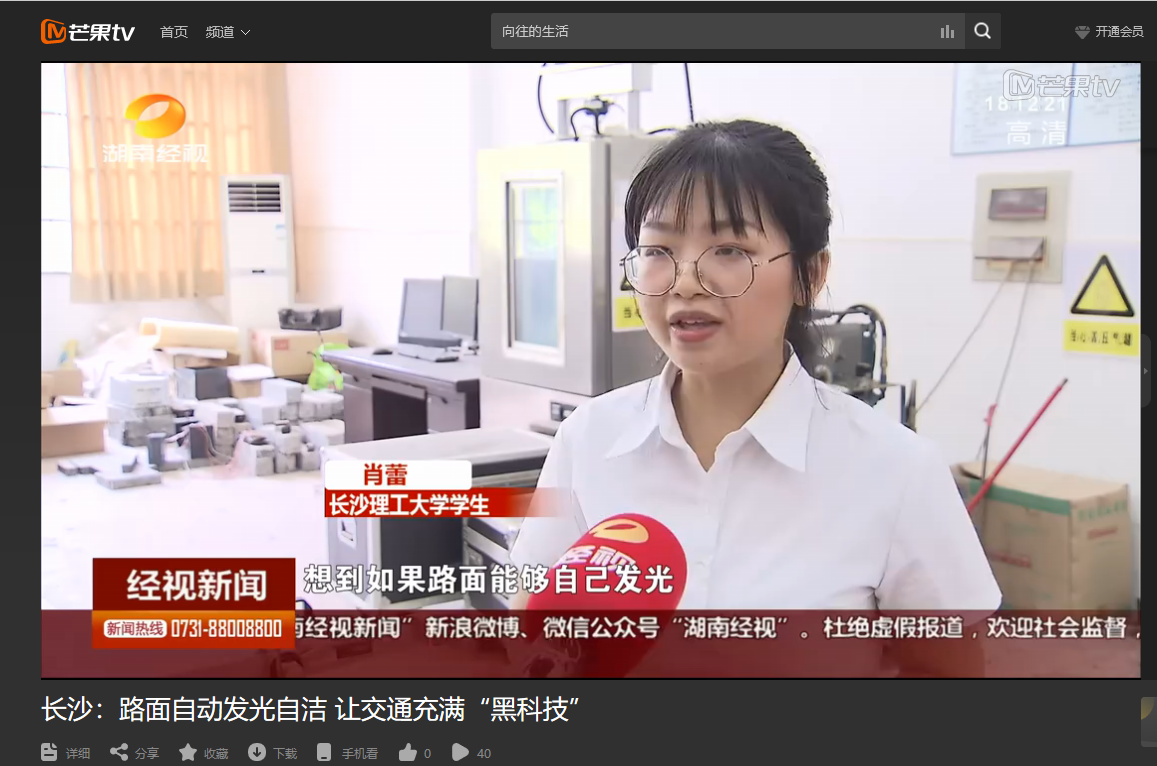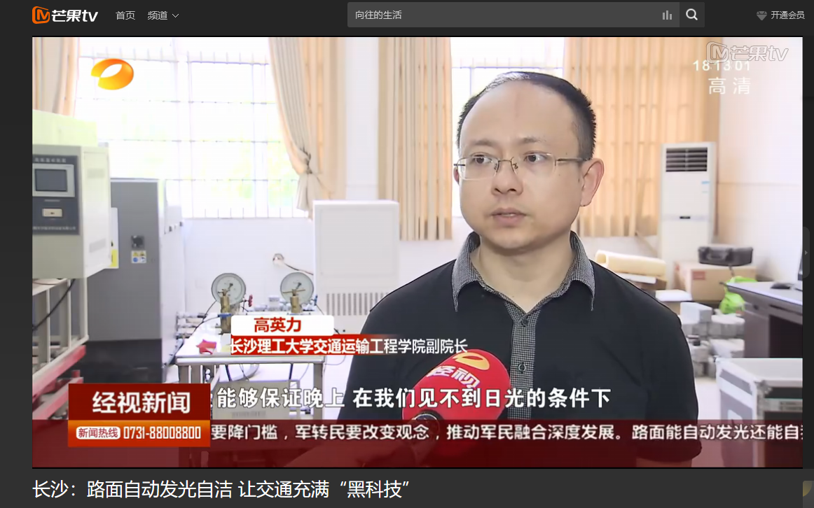 湖南经视5月19日经视联播对必赢官网举办的第十三届全国大学生交通科技大赛赛事进行了报道。其中,高英力教授指导,曹韩硕、李欢、袁江、郑策策、肖蕾参与研发的《“自发光—可自洁”智能仿生水泥路面》,受到湖南经视的特别关注进行了跟踪报道。项目从发光标志牌受到启发,运用长余辉发光材料使路面具备自发光的性能,使路面自己发光,对夜间行驶的驾驶员起到警示作用,同时智能仿生水泥运用超疏水材料使路面具备自洁性能和防覆冰效果,有较强的应用价值,最终项目获得第十三届全国大学生交通科技大赛二等奖。