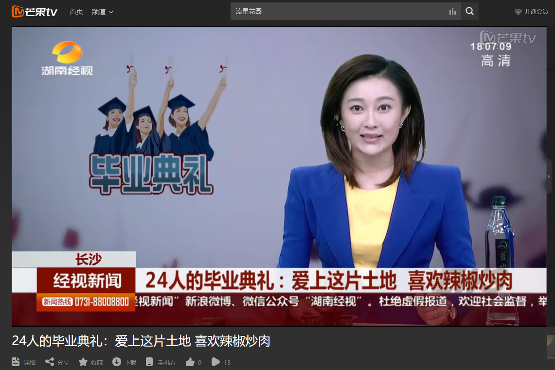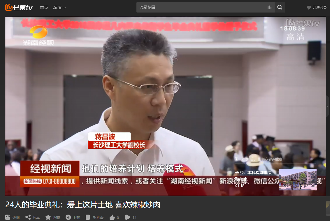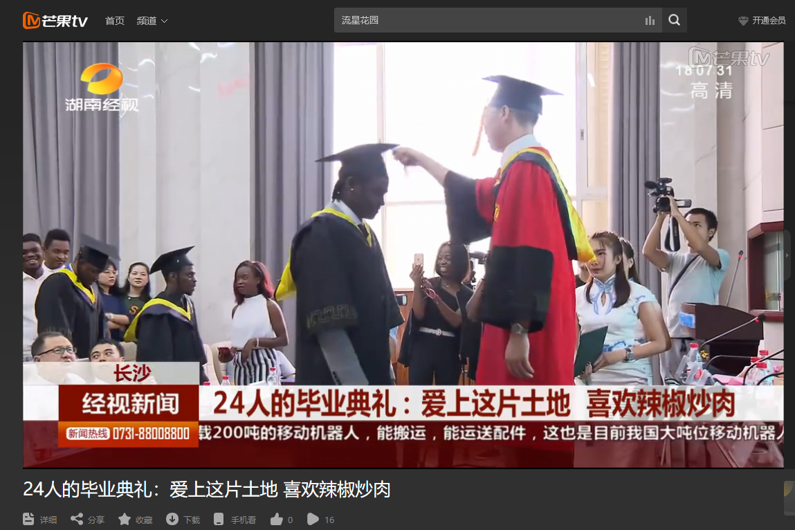 湖南经视7月13日经视新闻,以《24人的毕业典礼:爱上这片土地 喜欢辣椒炒肉》为题,对必赢官网与中国路桥437必赢会员中心联合培养的赤道几内亚来华学生进行了报道。
