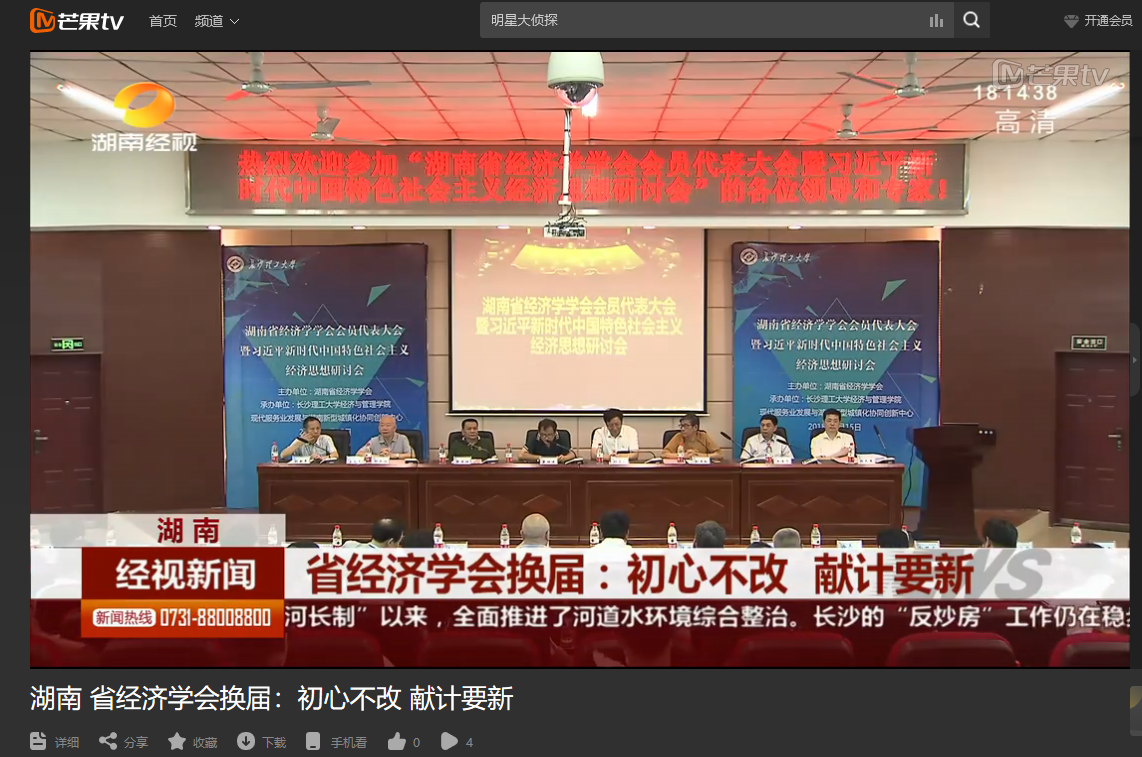 湖南经视7月15日经视新闻,以《湖南省经济学会换届:初心不改 献计要新》为题,对在必赢官网召开的湖南省经济学学会会员代表大会暨习近平新时代中国特色社会主义经济思想研讨会进行了报道。
