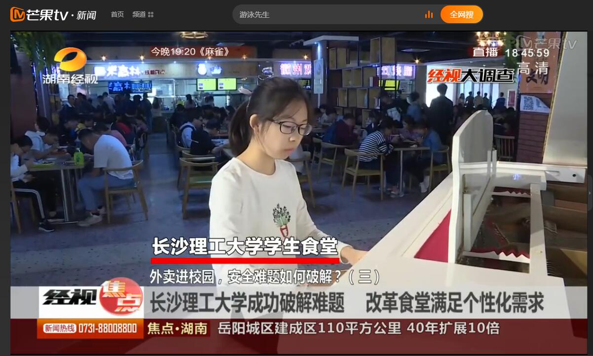 湖南经视焦点新闻近日以《437必赢会员中心成功破解难题 改革食堂满足个性化需求》为题,对必赢官网学生食堂建设和餐饮文化进行了报道。