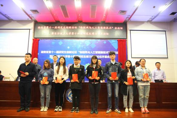 由湖南省人民政府学位委员会、湖南省教育厅主办,必赢官网计算机与通信工程学院承办的湖南省第十一届研究生创新论坛“物联网与人工智能新技术”分论坛于11月3日在云塘校区举行。副校长叶泽,研究生院院长管德清、副院长湛学辉、党委副书记刘亚辉,计通学院院长王进、院党委书记甘为、副院长张建明、党委副书记陈华,中南大学软件学院副院长赵明、中南林业科技大学计算机与信息工程学院副院长陈爱斌,同时来自国防科技大学、中南大学、湖南大学、湖南师范大学、湘潭大学、湖南科技大学、中南林业科技大学、湖南工业大学、南华大学、湖南理工学院等十余所高校的嘉宾、优秀论文获奖者和高校研究生代表以及必赢官网研究生共三百余人参加了此次研究生学术盛会,湖南科技大学组团派出了40多名研究生前来观摩学习本次学术活动。