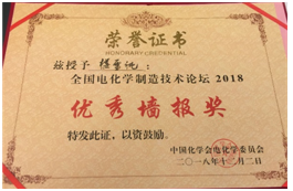 在分会场会议上,材料学院研究生夏路题为《高性能液流电池电极材料的性能研究》、常顺利题为《低成本中性铁硫液流电池的研究》的报告均以其研究的亮点与精彩的现场发挥,获得大会评审的一致好评,荣获大会“优秀青年报告”奖。在激烈的墙报角逐中,材料学院本科生楼雪纯因其墙报设计思路清晰,板面美观大方,内容详实而受到组委会专家的一致好评,在诸多竞争者中脱颖而获得“优秀墙报”奖。