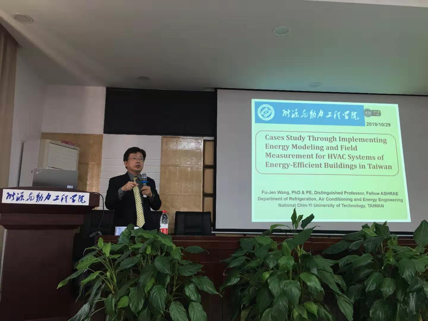 10月29日,台湾勤益科技大学首席教授、美国采暖制冷空调工程师学会会士、台湾测试认证协会主席王辅仁先生,应邀来我院做学术报告。学术报告由副院长何建军主持,我院建筑环境与能源应用专业的部分教师、研究生和本科生参会。