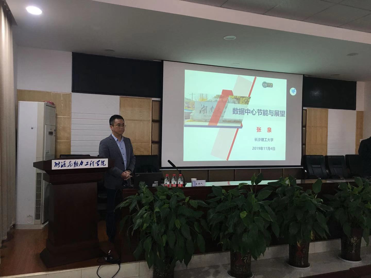 11月5日下午,湖南大学土木工程学院博士生导师、暖通空调产业创新联盟数据中心工作委员会副主任张泉来校交流,于新能源大楼2栋504会议室作了主题为“数据中心节能技术与展望”的学术报告,本次报告由能动学院副院长何建军主持,建筑环境与能源应用专业部分教师、研究生和本科生参会。