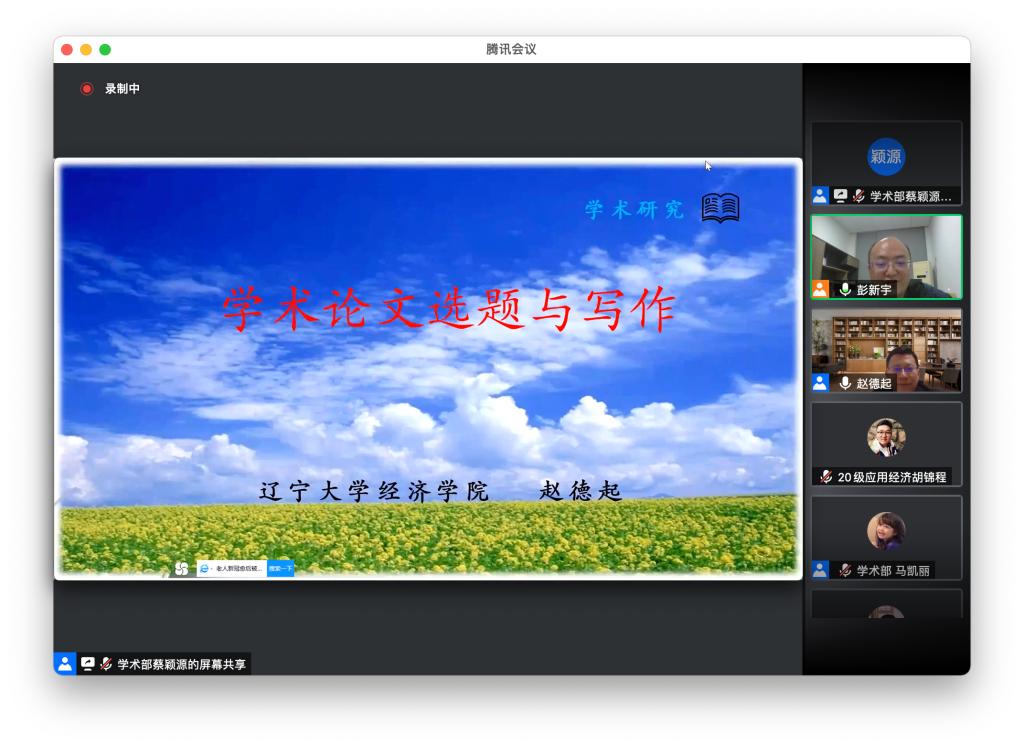 11月17日晚,辽宁大学经济学院副院长赵德起开展了“学术论文选题与写作”线上专题讲座。此次讲座是第十六届研究生博力学术论坛之经济全球化与管理创新专题论坛第三期,讲座由必赢官网经管学院院长陈银娥主持,副院长彭新宇、辅导员周路路及学院近300名硕士研究生、本科生参加。