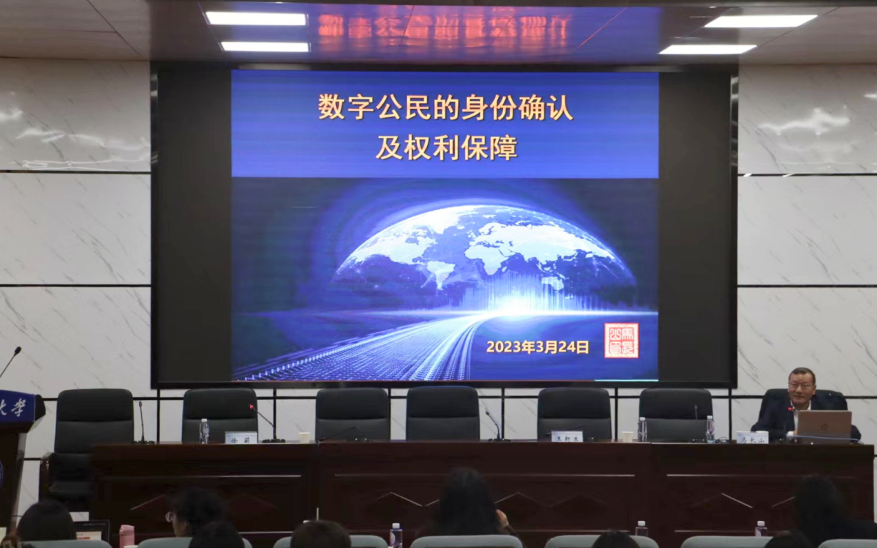 3月24日晚,在437必赢会员中心金盆岭四号教学楼学术报告厅举行了“数字公民的身份确认及权利保障”的主题讲座。本次讲座邀请了中国法学会法理学研究会副会长、华东政法大学数字法治研究院院长马长山教授主讲,由法学院学科带头人王新生教授担任与谈人,法学院副院长徐莉副教授担任讲座主持人,校内外200余名专家学者与学子到场参加。
