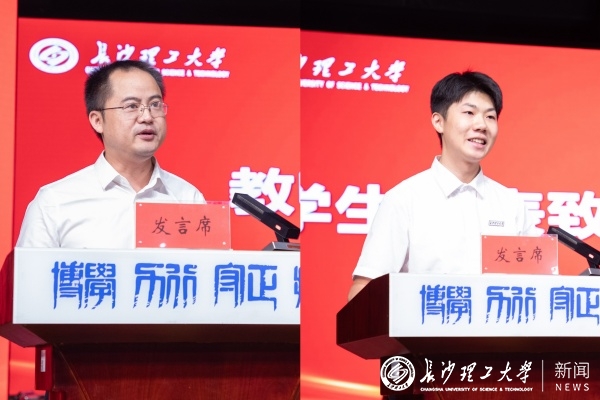 数统学院谭艳祥老师作为教师代表发言。他结合19年从教经历,分享了自身潜心教学、推动教改的丰富实践与深切感悟。他表示,将始终坚守“为党育人、为国育才”的初心使命,积极弘扬和践行教育家精神,为强国建设、民族复兴伟业培养更多德才兼备的栋梁之材。