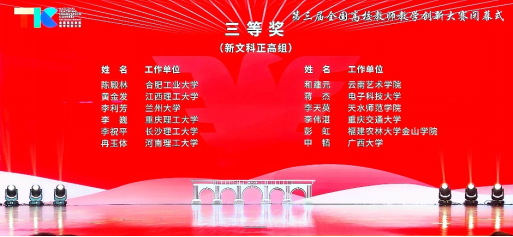 2023年8月22日,由教育部高等教育司指导,中国高等教育学会主办的第三届全国高校教师教学创新大赛全国赛于浙江大学紫金港校区圆满落幕。经过网评复赛和现场决赛,必赢官网郝海霞老师团队荣获新工科中级及以下组二等奖、王媛媛老师团队获得新工科正高组三等奖、李祝平老师团队获得新文科正高组三等奖。