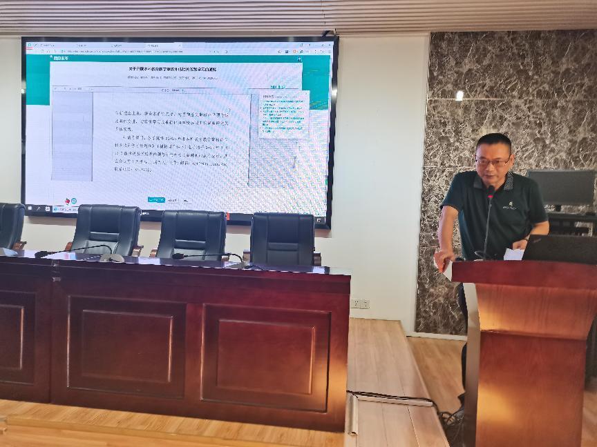 张卫兵副院长(主持工作)对新一轮审核评估的特点和重点作了详细解读,并带领参会人员共同学习了本科教育教学审核评估的基本原则、工作目标、指标体系框架等。并根据学院实际情况,就如何进行学术型人才培养给予了具体指导。
