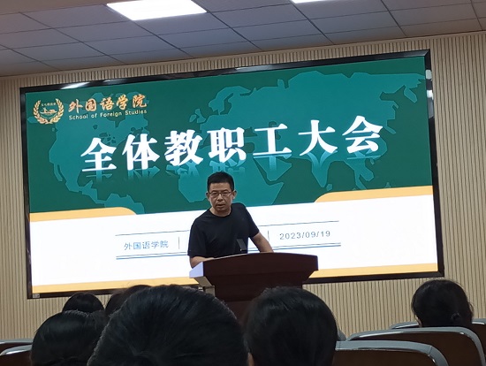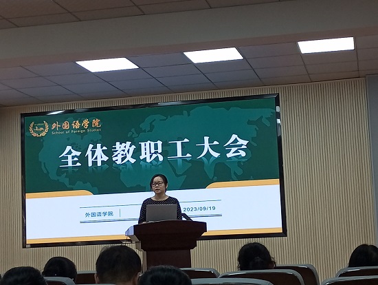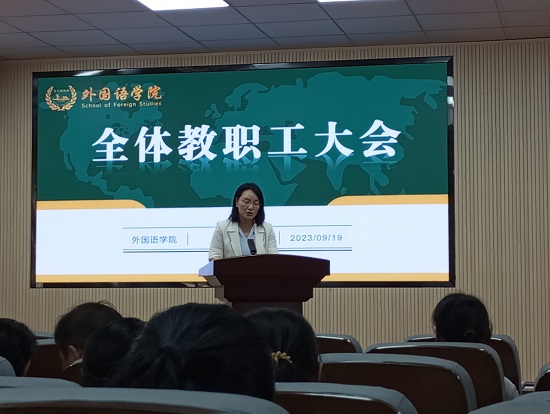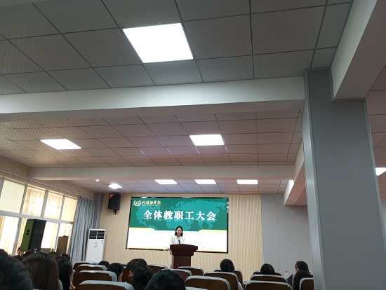 919日下午,学院在金盆岭校区3号教学楼321会议室召开全体教职工大会,院党政导班子成员、全体教职工参会。会议由院党委书记文丽丽主持。