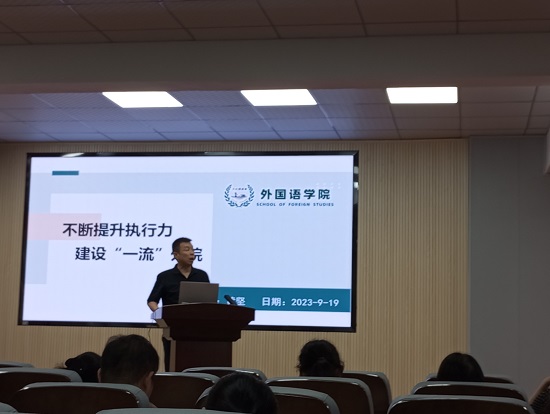 黄坚副院长今年7月初到川大参加培训学习结合学习经验和个人心得,给全体教职工做了题为“不断提升执行力 建设一流外院”专题报告。他从川大暑期培训的背景、川大的基本数据、培训开设的课程、培训等四个方面进行愉快分享。